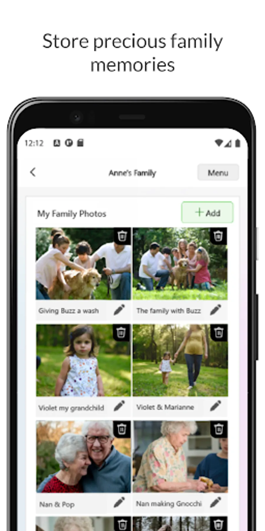 The FamilyShare App allows family members to remotely share messages and photographs with their loved-ones at aged-care facilities, as well as easily edit media using either the mobile or web App.