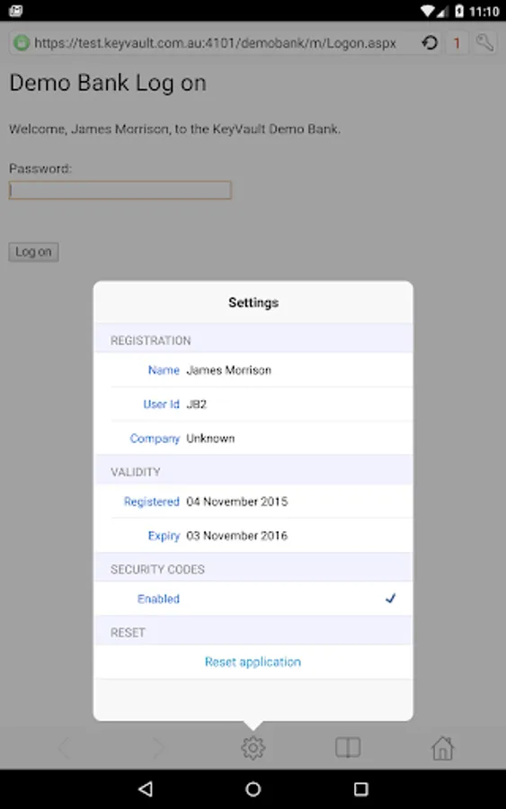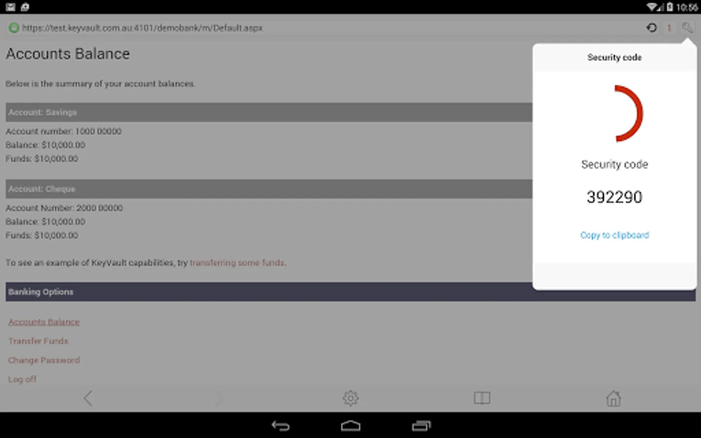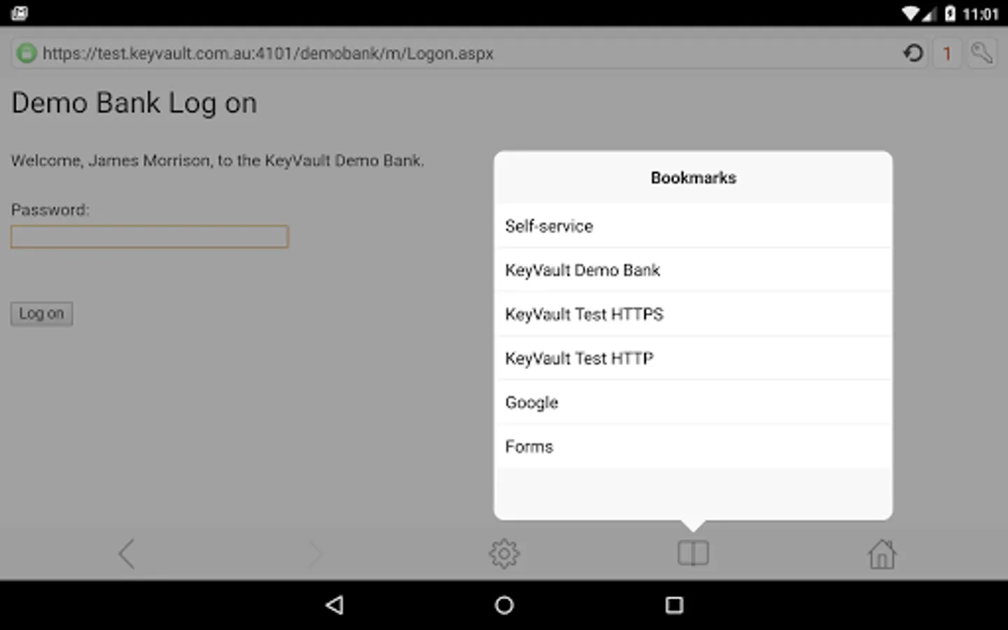 The KeyVault application works in conjunction with a KeyVault management server to provide secure access to online services. Your bank or company must have purchased the KeyVault management server and provided you with the server URL before you can use this application to access their services.