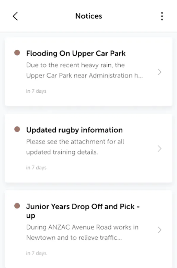 Notices: the Notices module provides The Killarney School with the ability to keep their community informed with important information, with push notifications for urgent school notices