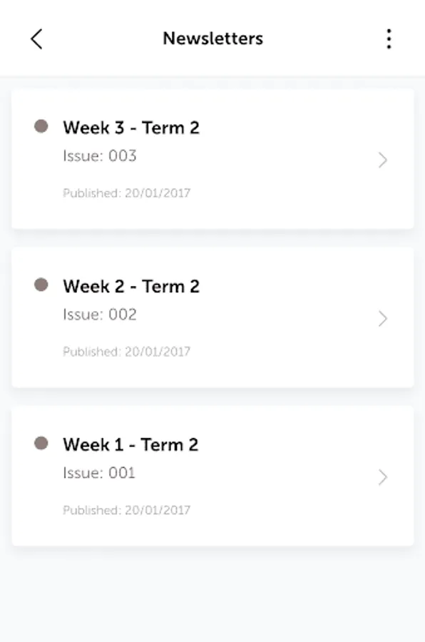 Newsletter: the Newsletter module allows The Killarney School to share electronic newsletters, directly to the app