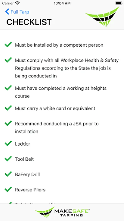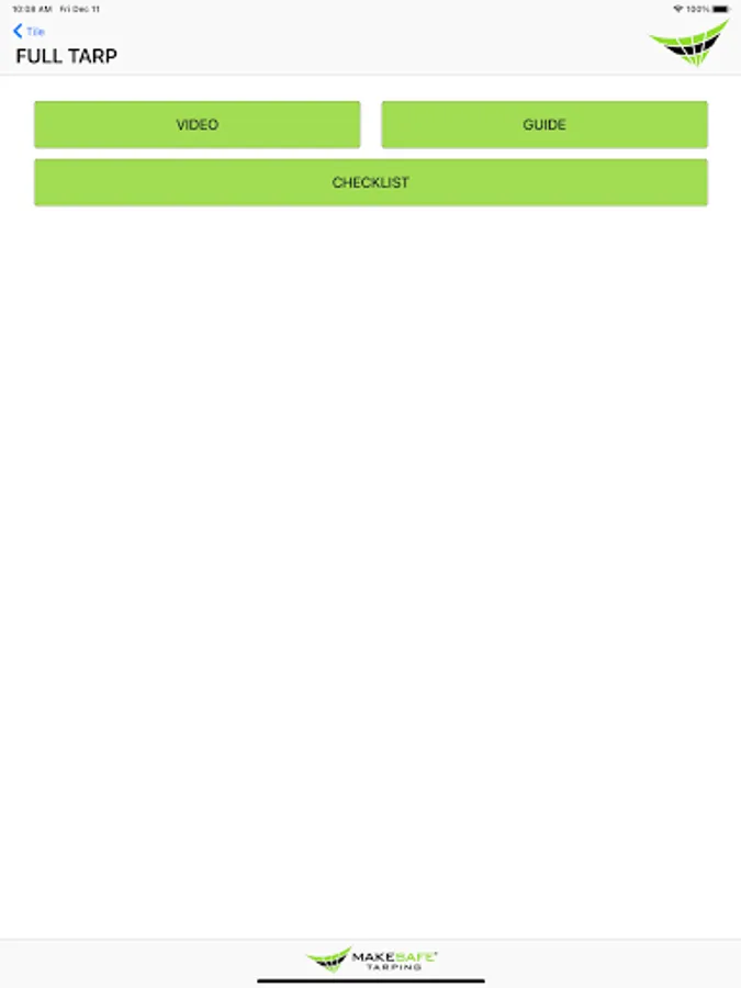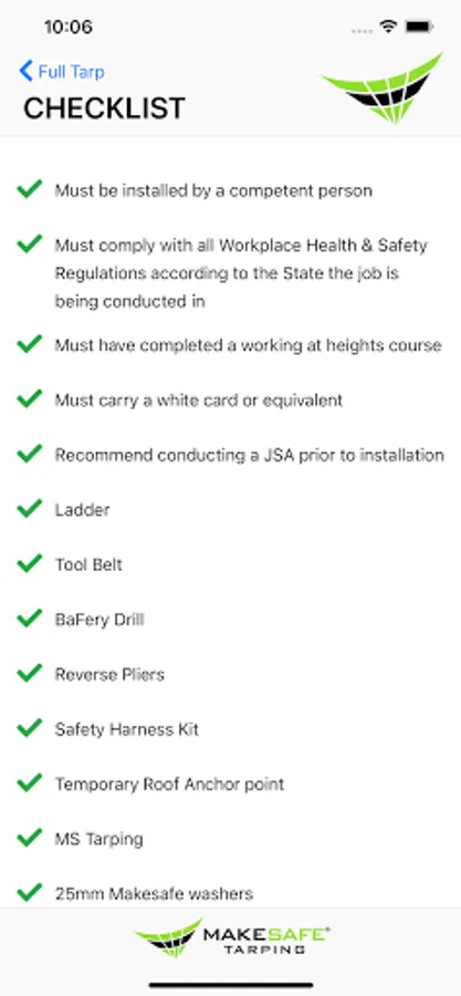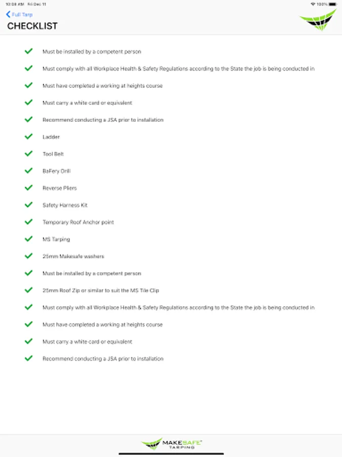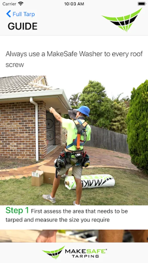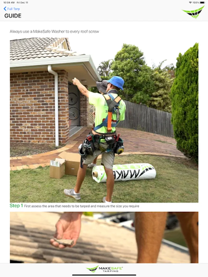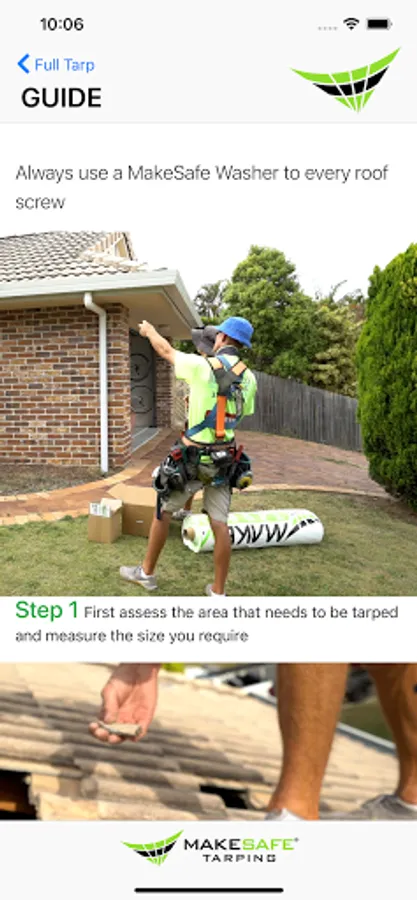 The MakeSafe App is designed to assist builders with guides, checklists and videos that show best practice in the installation of MakeSafe Tarping on different roof types including, Metal, Tile, Asbestos, and Frame only.