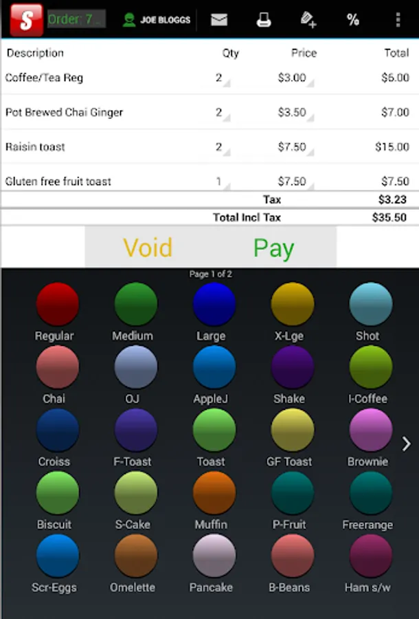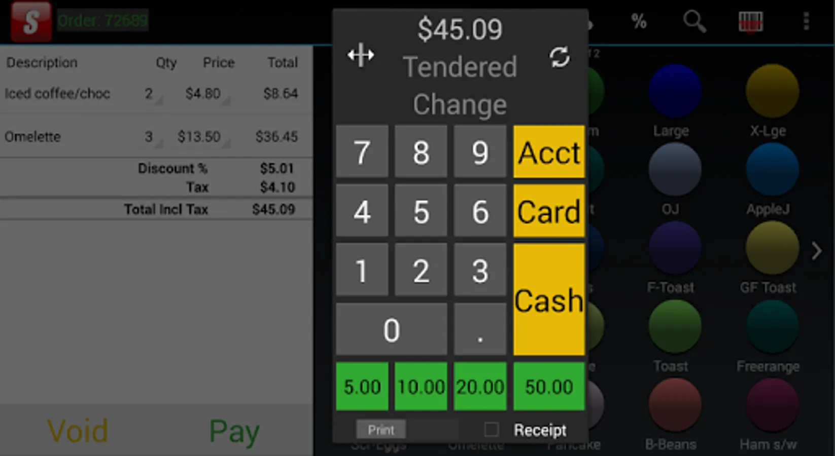 Whether adding items automatically with a bluetooth barcode reader or built-in camera scanner, booking orders to customer accounts or setting up loyalty points it is simple and easy with SuperFastPoS. Split bills allow easy separate payment types on an order.