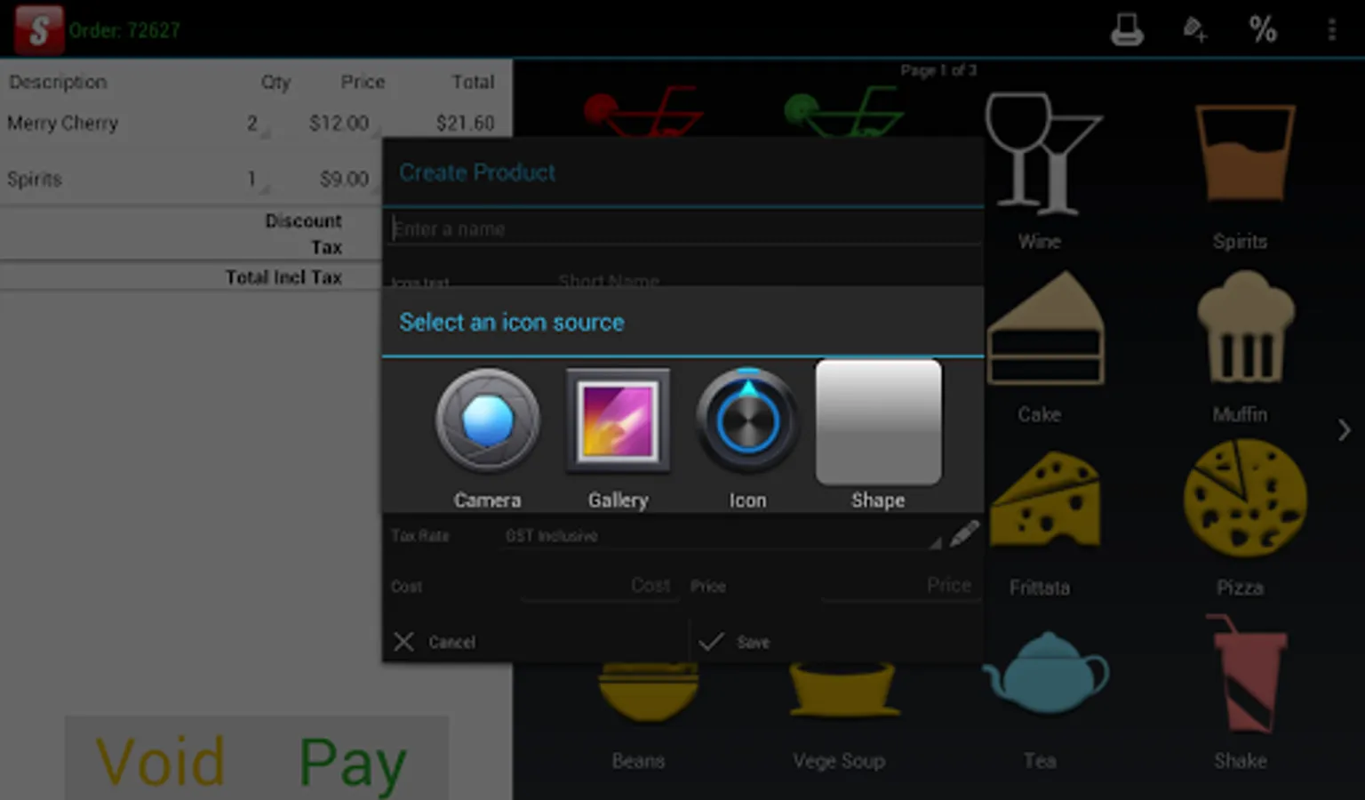Choose icons from built in shapes or photos or picture gallery. You can also apply individual colours on each item for instant recognition of each item. Items can also be defined on the fly for those custom orders that may come up.