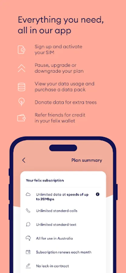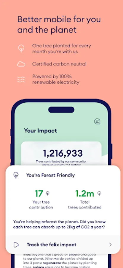Join one of our no lock-in contract plans with one tree planted for every month you're with us. felix mobile is also certified carbon neutral, and powered by 100% renewable electricity.