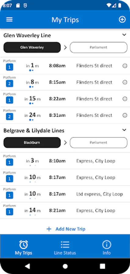 - My Trips allows you set up your stations as well as lines so you can receive the next four timetabled services from your chosen stations and will show alerts for your chosen lines
