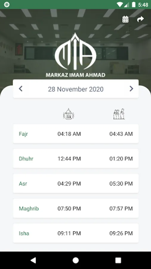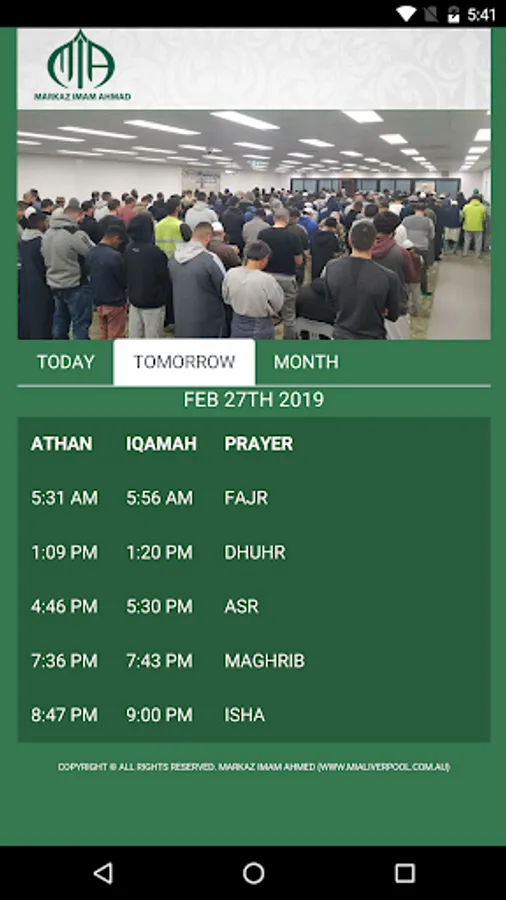 This is the official app of Markaz Imam Ahmad (MIA) that provides the latest prayer times of the Musallah.