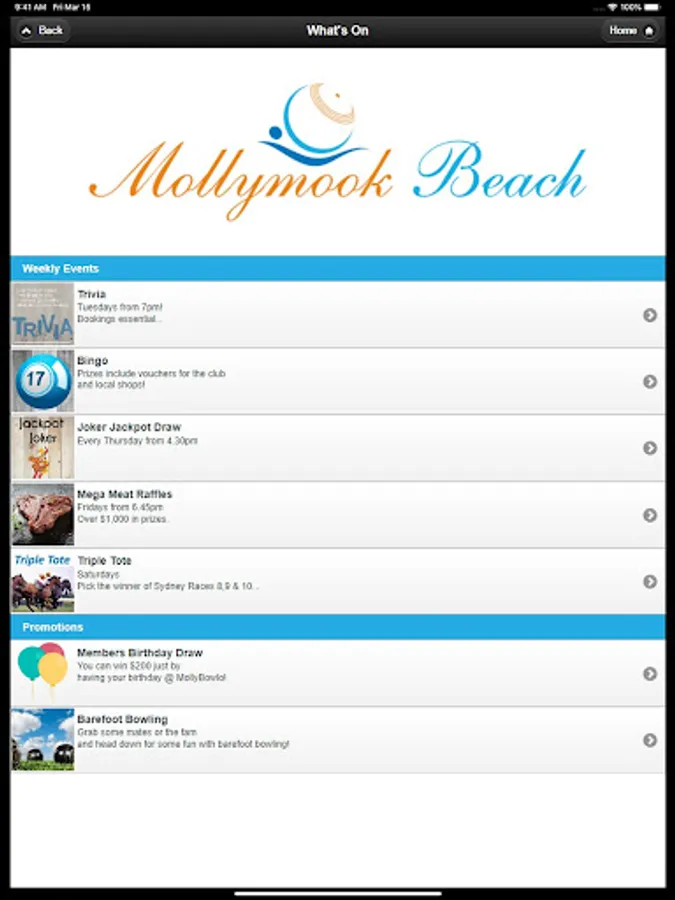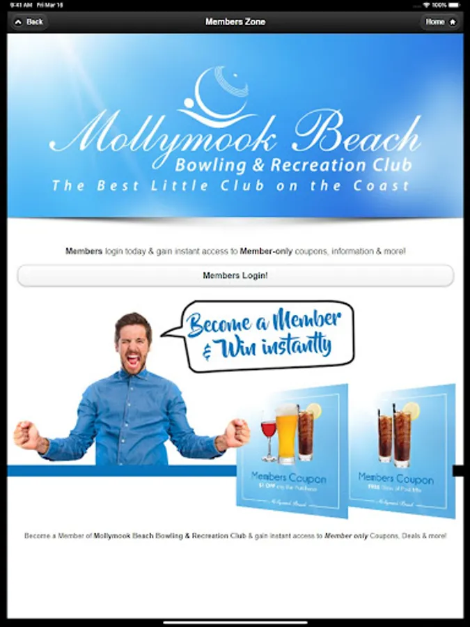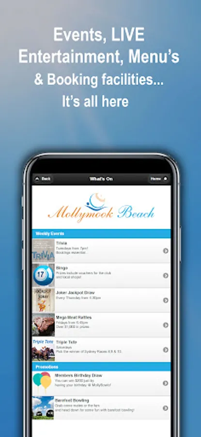 The Mollymook Beach Club App keeps all its Members and Guests up-to-date on: