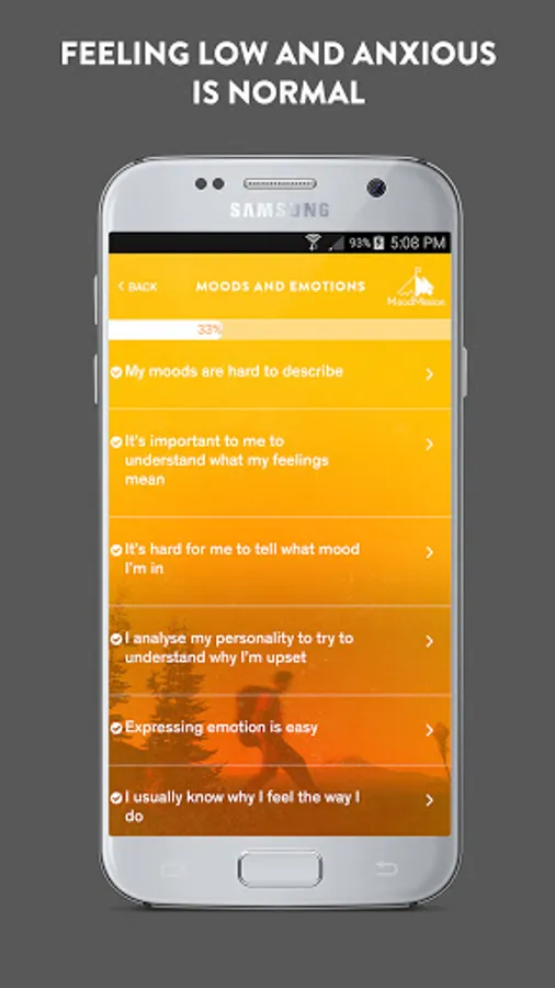 MoodMission is based in cognitive behavioural therapy (CBT), which is an evidence-based psychological therapy for anxiety and depression. Anyone can use MoodMission, whether you just want a lift in your day or need a bit more help recovering from anxiety or depression.