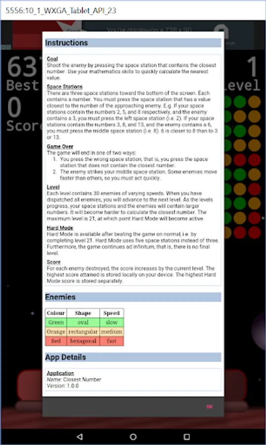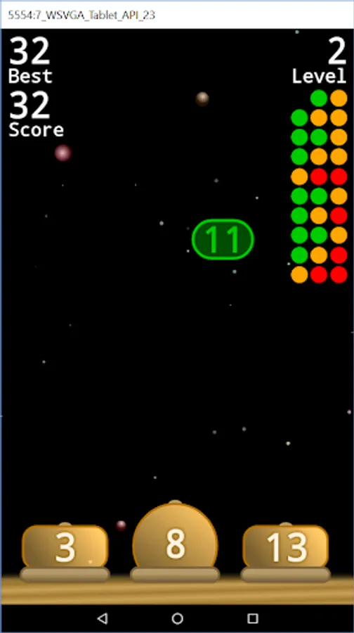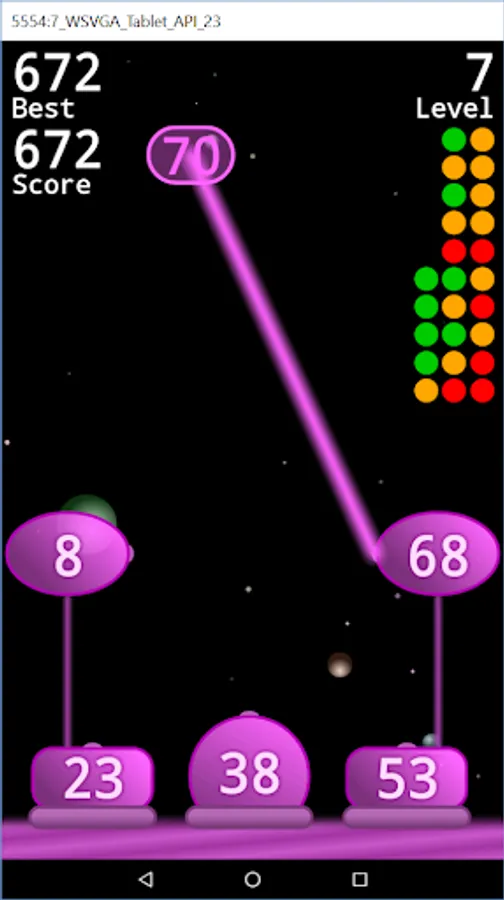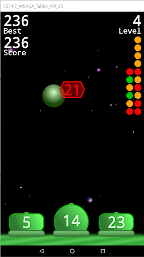 Each level contains 30 enemies of varying speeds. When you have dispatched all enemies, you will advance to the next level. As the levels progress, your space stations and the enemies will contain larger numbers. It will become harder to calculate the closest number. The maximum level is 21, at which point Hard Mode will become active.