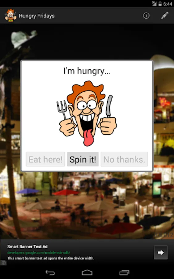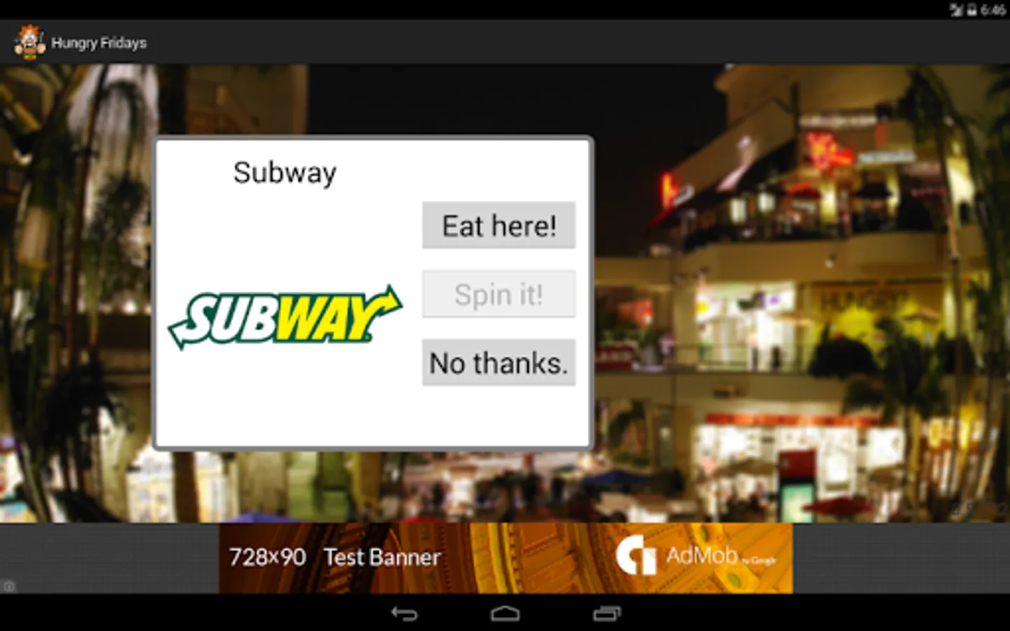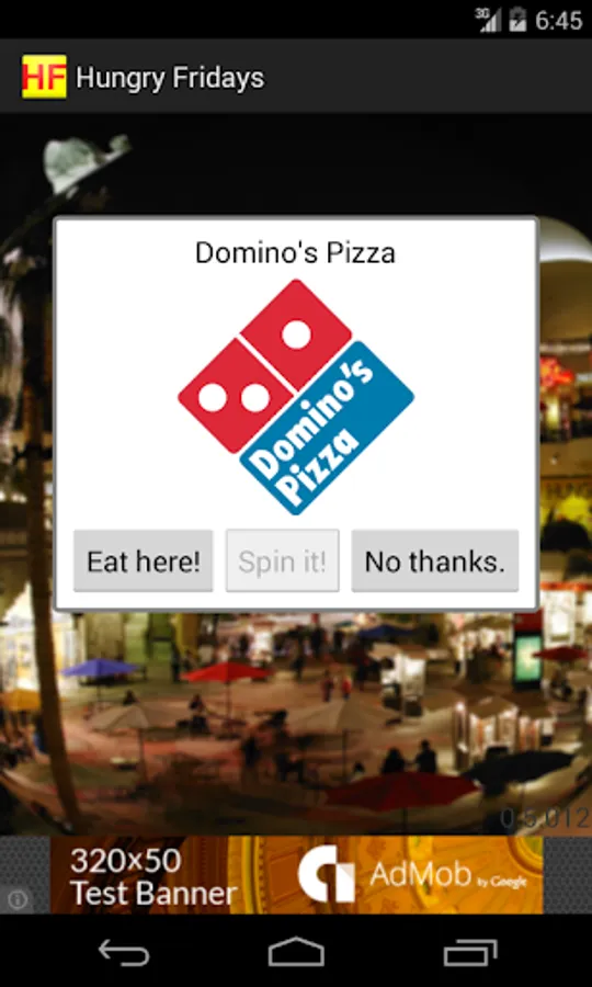 Hungry Fridays makes choosing fast food easy! Just press 'Spin It!' and a random restaurant will be selected. If you don't like the choice, it doesn't matter, just spin again!