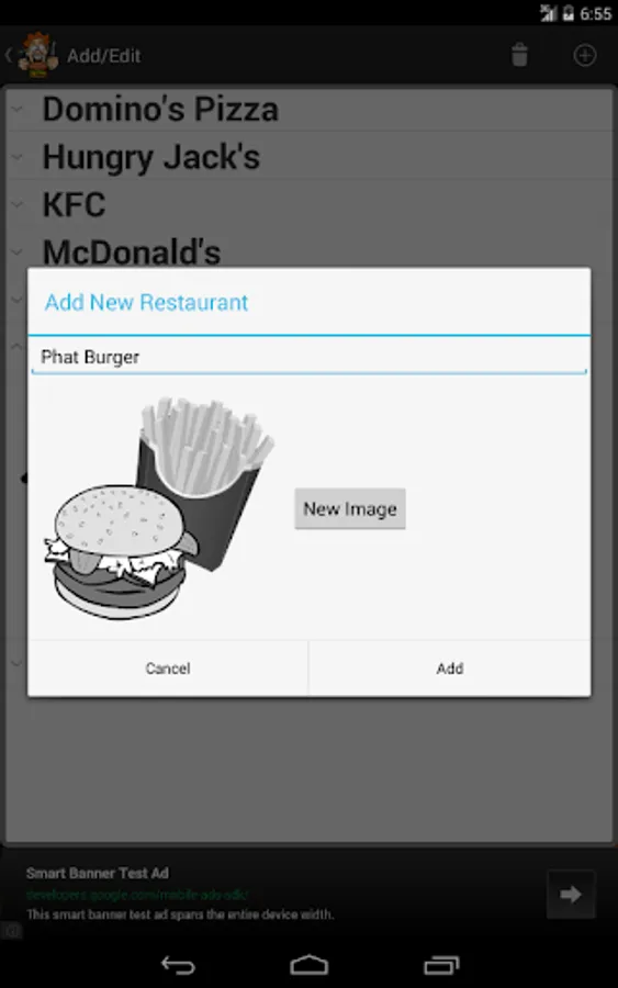 • Preloaded Restaurants: Some of the more famous fast food restaurants have been preloaded (Domino's Pizza, Hungry Jack's (Australian Burger King), KFC, McDonald's, Nando's, Pizza Hut and Subway). If you don't like them, delete them!