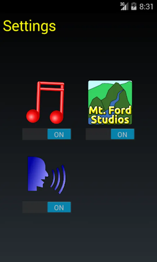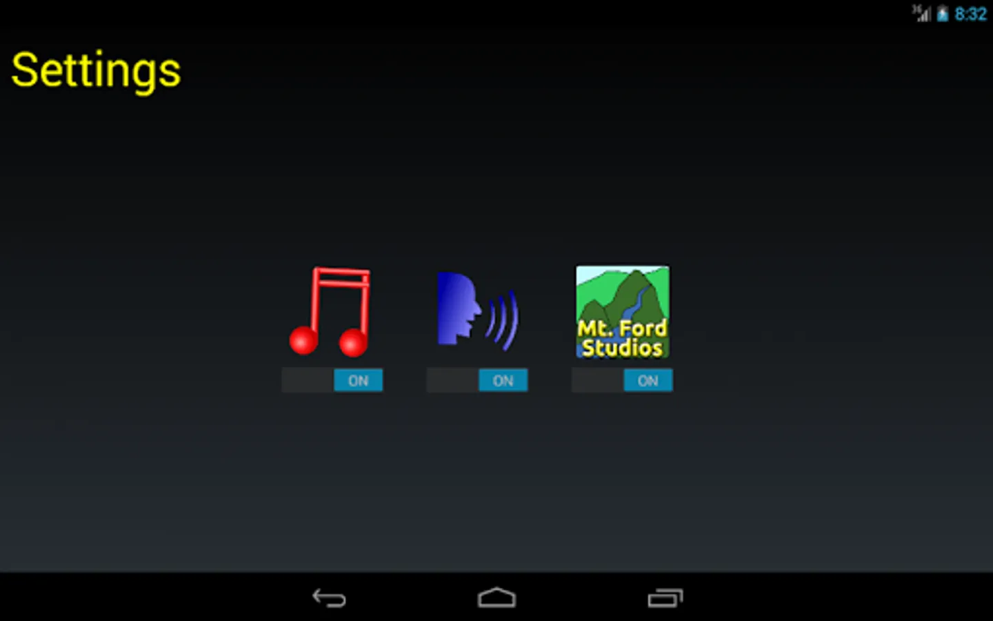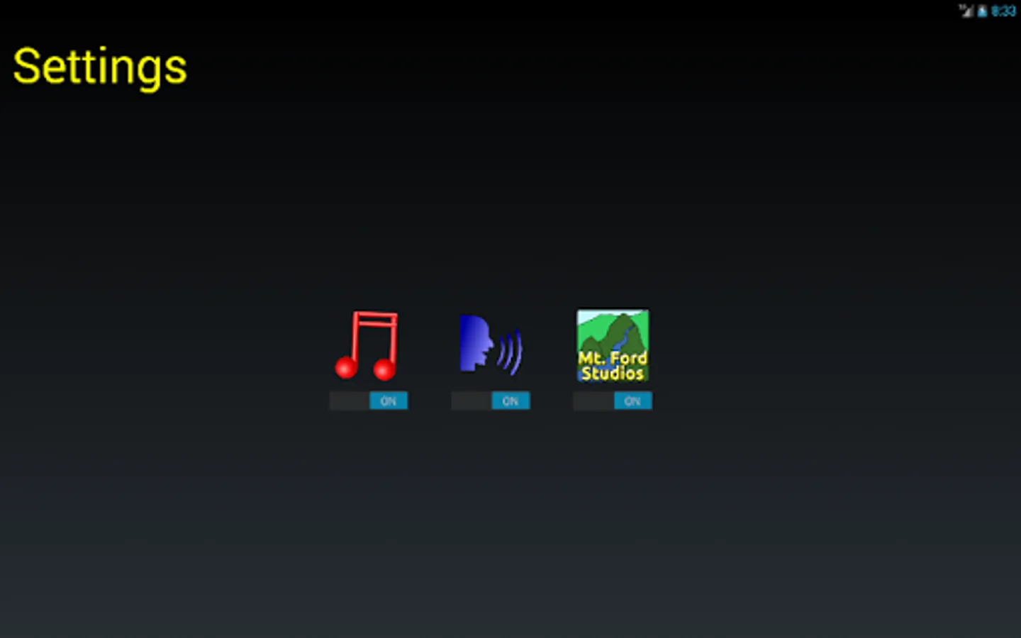 • Music and speech. Each shape is read aloud and displayed on the screen. Music and/or speech can be turned off in the Settings screen.