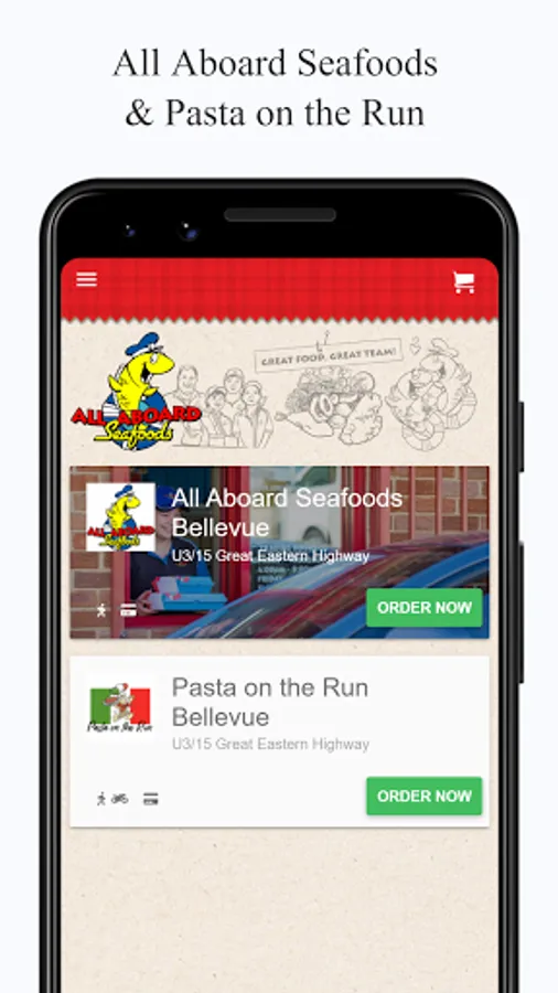 Order and pay for goods from All Aboard Seafoods & Pasta on the Run in Bellevue so you can skip the wait. Fast, easy to use, and hassle-free.