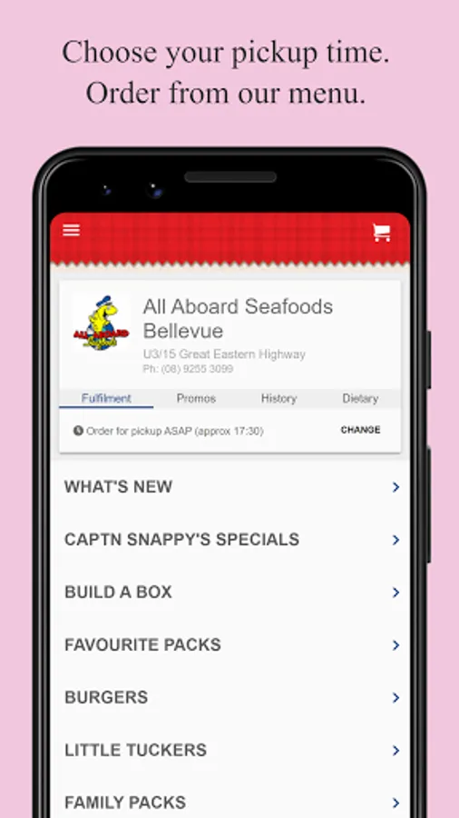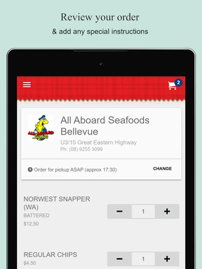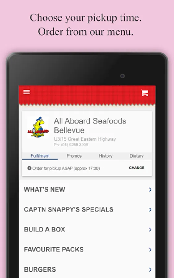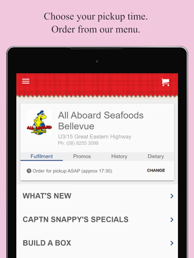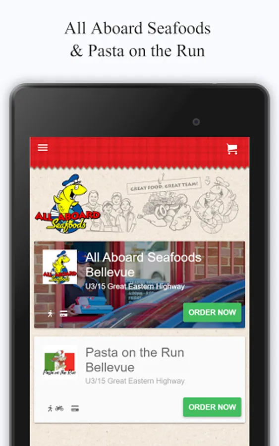 You can also order online from our web site www.allaboardseafoods.com.au using your smartphone, desktop, laptop, and tablet computers.