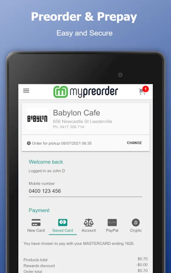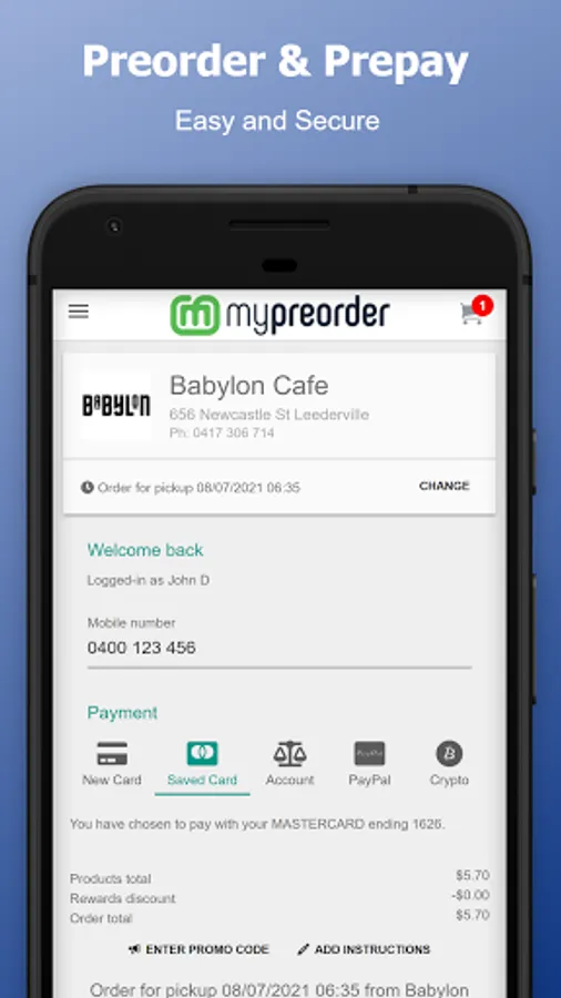 Order and pay for goods at local restaurants, takeaways and cafes so you can skip the wait and reduce contact points.