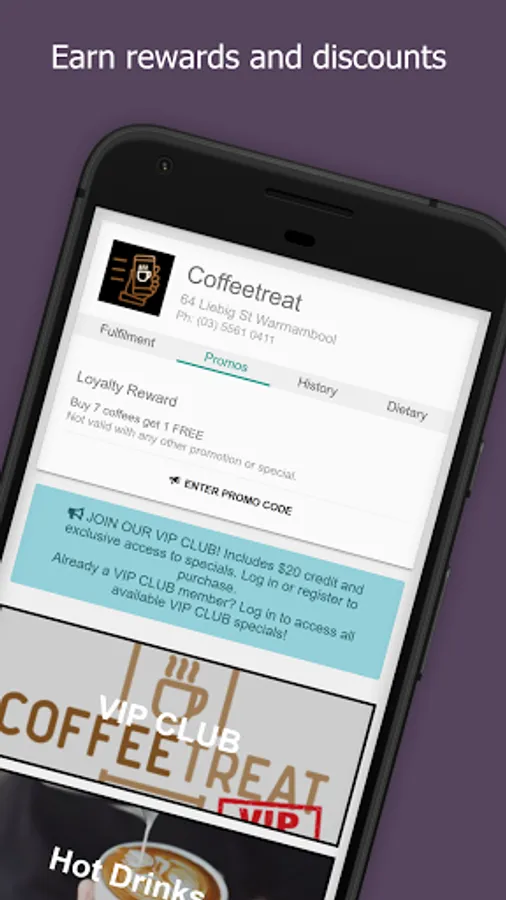 - Optionally 'top up' (add credit) to your account to use at any member location or to simply speed up the checkout process* (ideal for regular café-goers)