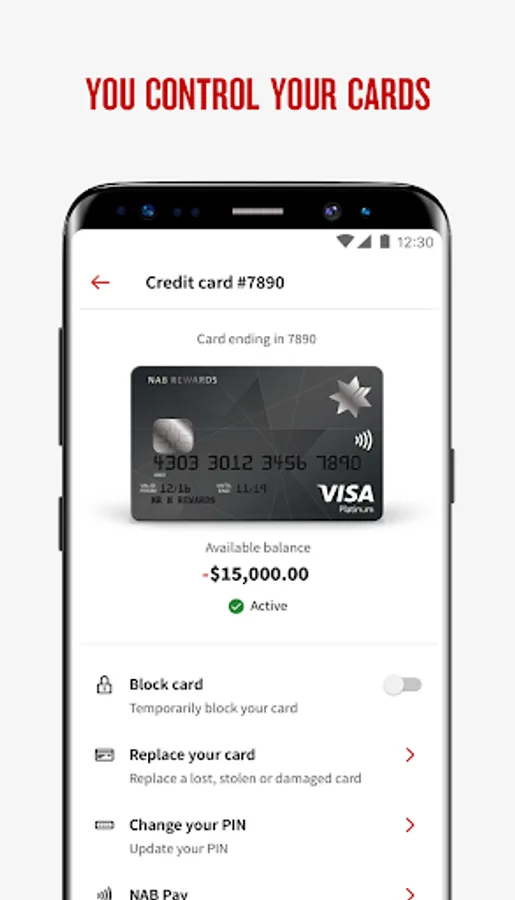 • Control where and how you use your Visa credit and debit cards, such as for online transactions or overseas card use.