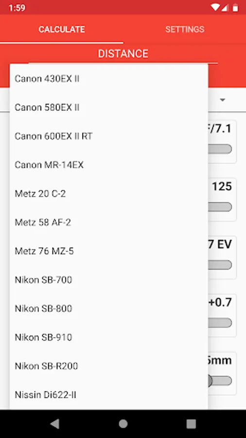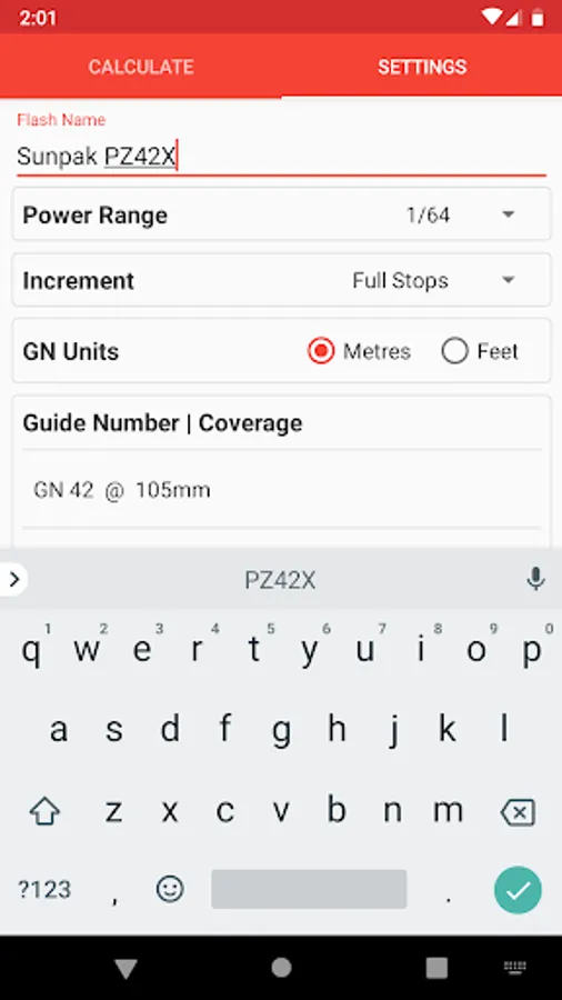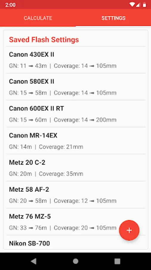 Delete, edit or rename any of the pre-configured or user-added flash profiles at any time. Create profiles for both imperial and metric GN values.
