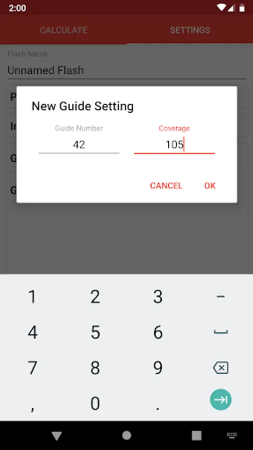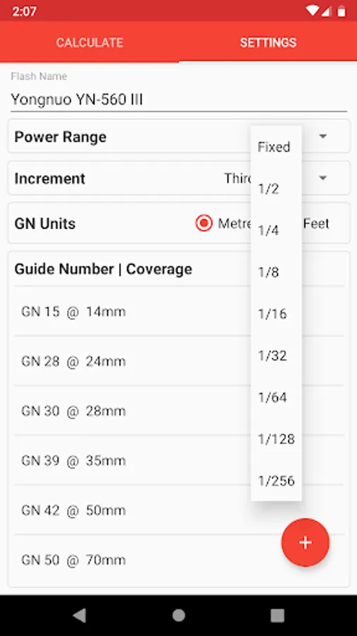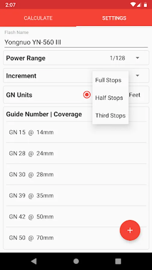 Set the guide number/zoom coverage, power-ratio limit, power adjustment interval, and guide number units for each of your flash units. (You can find this information from the guide number table in your flash user manual).