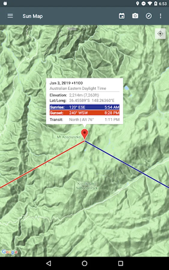 Sun Map is a solar event utility for the outdoor adventurer and photography enthusiast. It is the ideal companion to help you plan a photography shoot, or simply find the perfect vantage point to view a sunrise or sunset, for any date, anywhere in the world.
