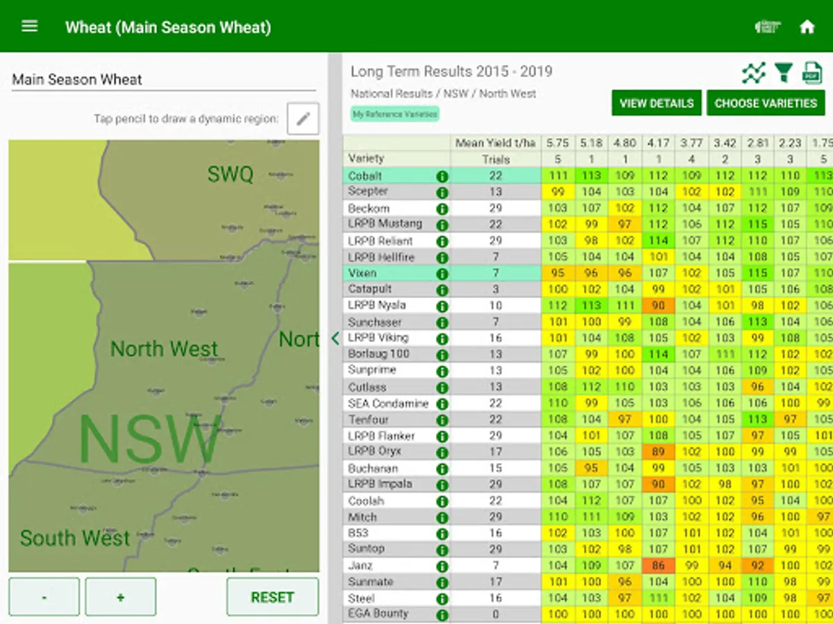 The NVT Long Term Yield Reports provide Australian growers and advisors with the best available tool for making variety selection decisions based on crop yield. Information is available for all cropping regions in Australia for ten crops including wheat, barley, canola, oat, triticale, chickpea, field pea, faba bean, lentil and lupin.