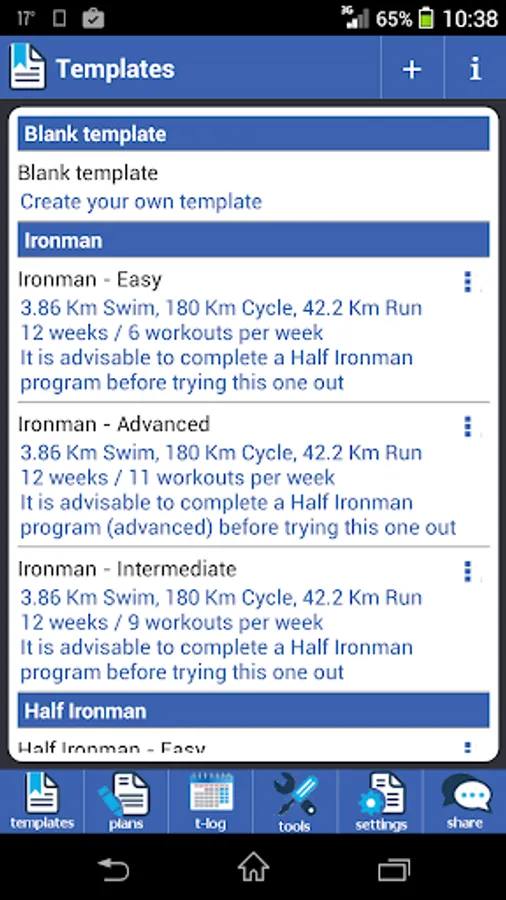 Note that some triathlon training program templates and tools are free and others can be bought in the Megathlon In-app store. There is a preview option available for triathlon training programs and tools.