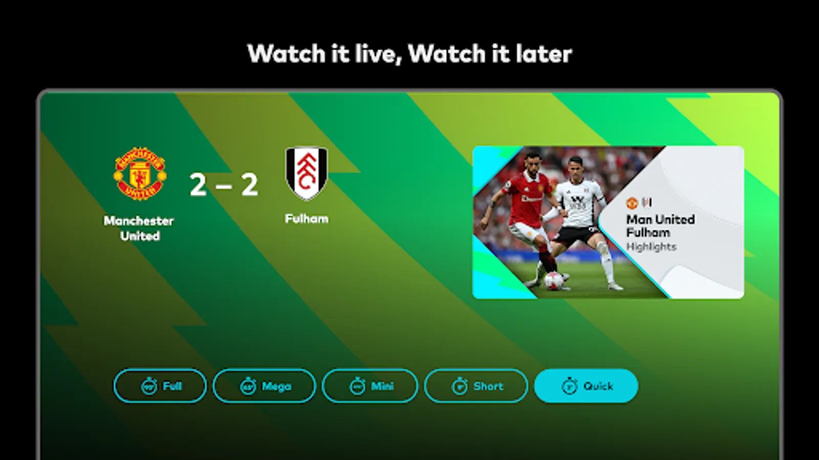 Dive into our comprehensive coverage that goes beyond the pitch. Watch it live or watch it later on-demand, or if you’re short on time dip into a mini match or highlights. Follow your favourite team and get up close and personal with interviews and press conferences. Indulge your passion for football in a plethora of shows and special features.