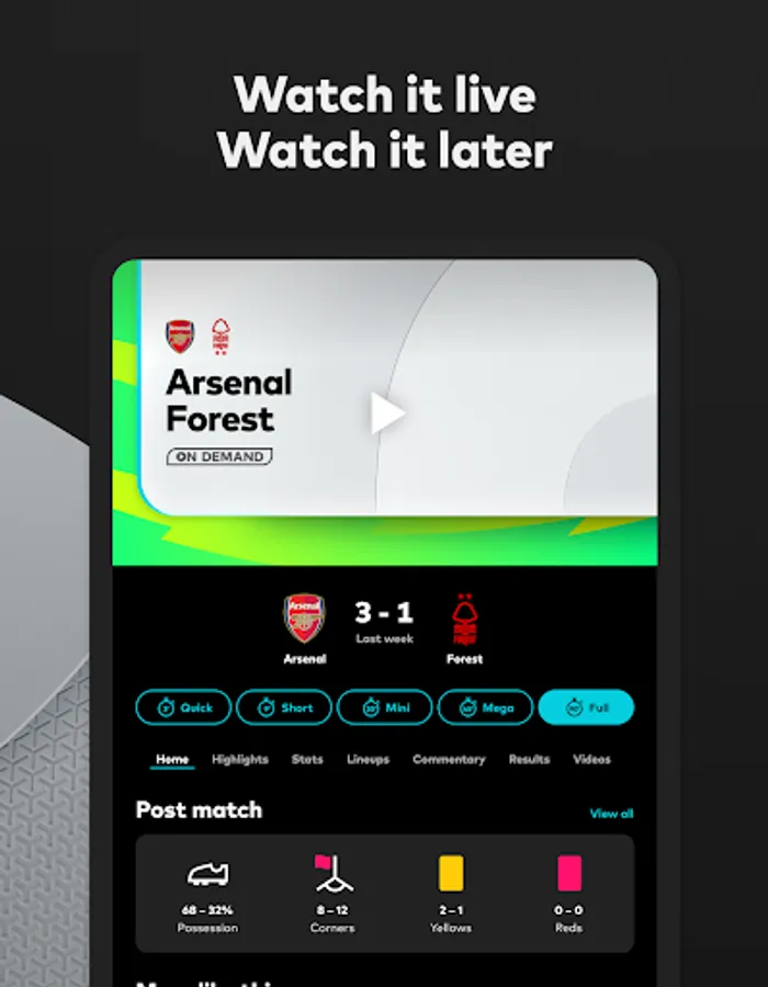 Dive into our comprehensive coverage that goes beyond the pitch. Watch it live or watch it later on-demand, or if you’re short on time dip into a mini match or highlights. Follow your favourite team and get up close and personal with interviews and press conferences. Indulge your passion for football in a plethora of shows and special features.