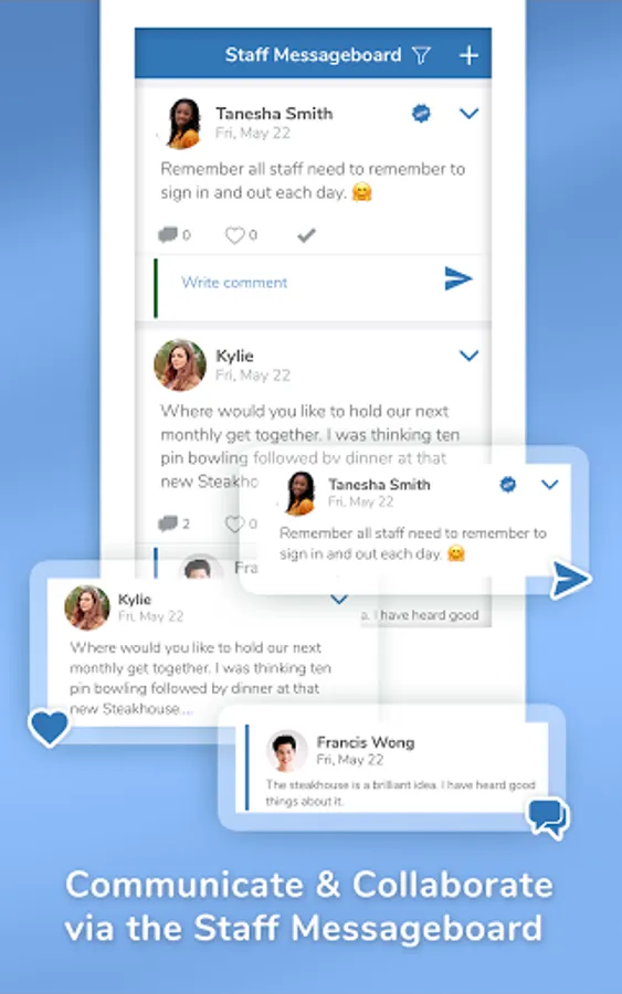 Staff Communication is a breeze with Messaging, Meetings/Minutes and Calendars.