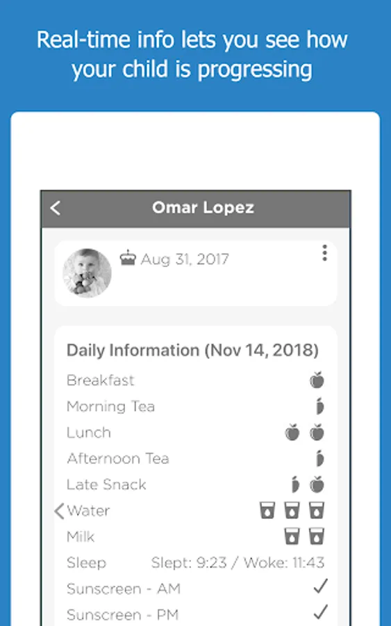 Get access to real-time data about your child including vital stats & other important information. Plus, parents receive photos, videos & updates throughout the day via social posting of their child learning and playing.