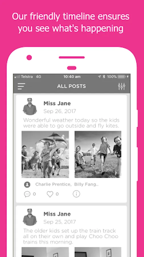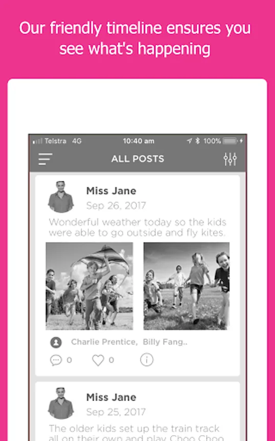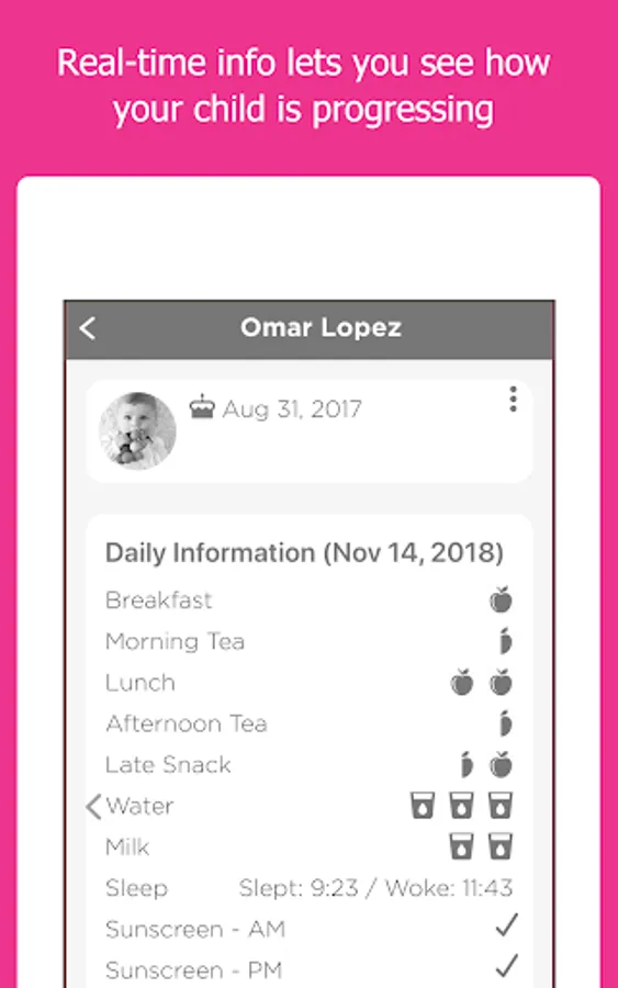 Get access to real-time data about your child including vital stats such as Food & Fluid Intake, Sleep Checks, Nappy Changes & other important information. Plus, parents receive photos, videos & updates throughout the day via social posting of their child learning and playing. You can also Book Casual Days, know what's happening with our Event Calendar and much much more.