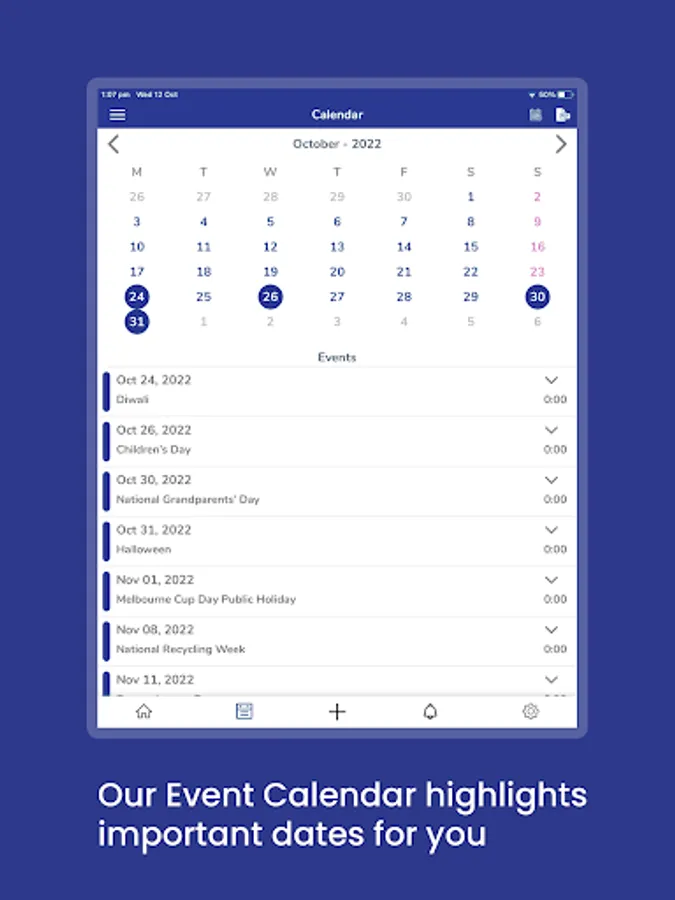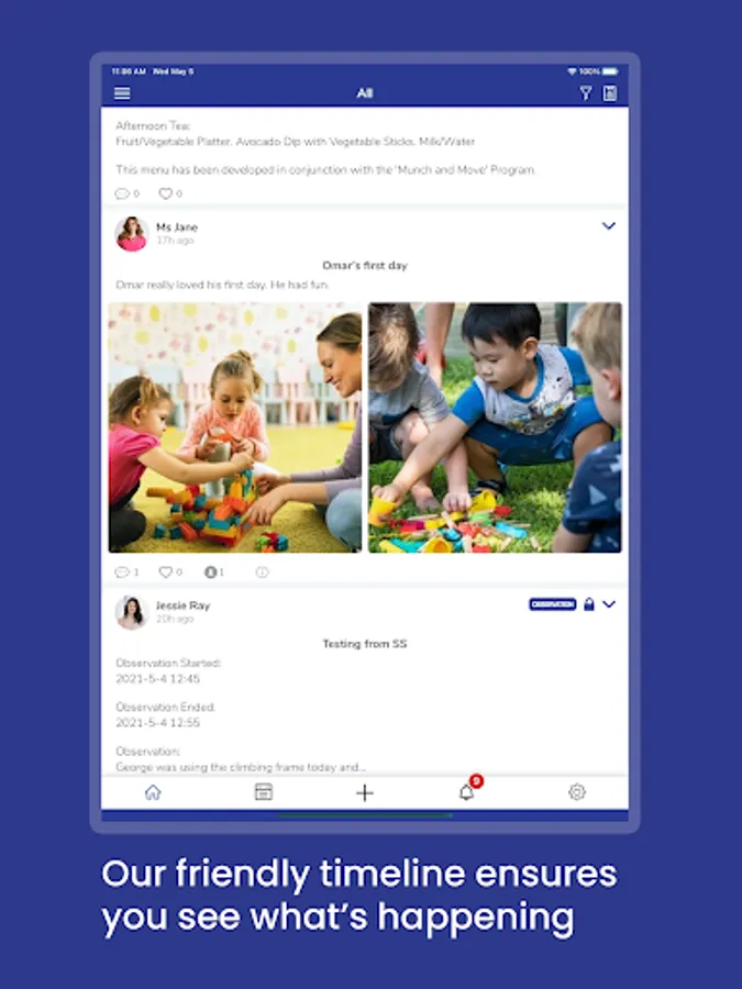 Get access to real-time data about your child including vital stats such as Food & Fluid Intake, Sleep Checks, Nappy Changes & other important information. Plus, parents receive photos, videos & updates throughout the day via social posting of their child learning and playing. You can also Book Casual Days, know what's happening with our Event Calendar and much much more.