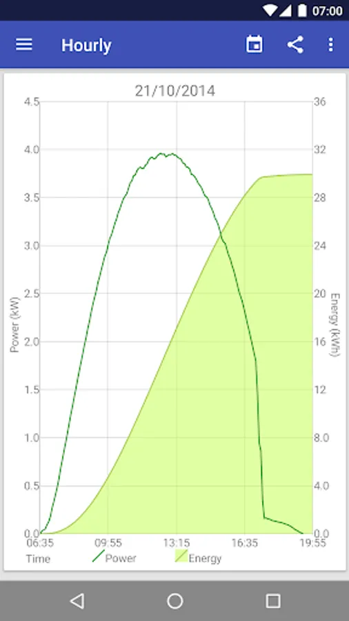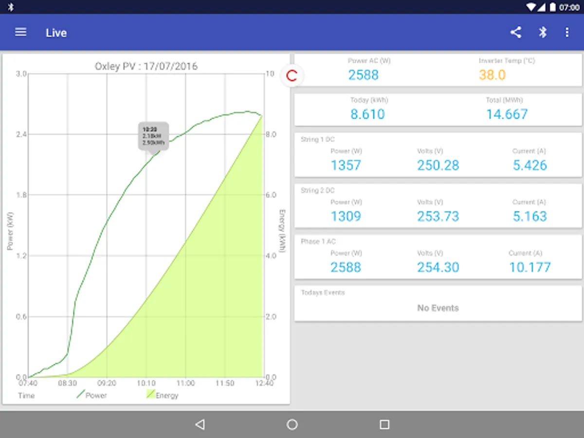 • View live spot data with graph of todays power (kW) and total energy (kWh).