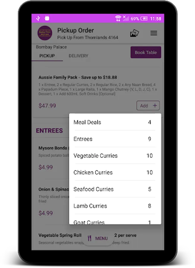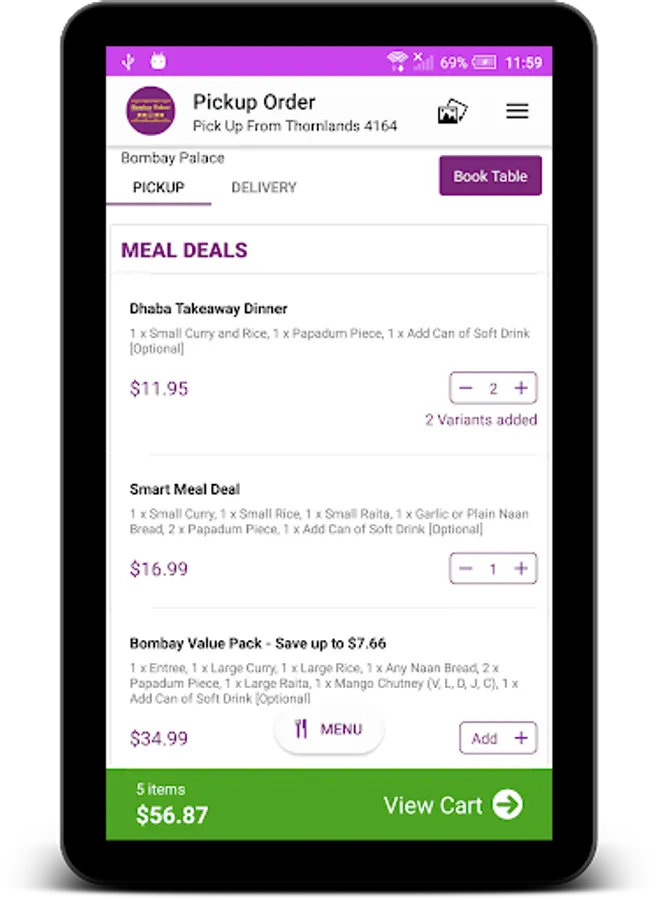 Bombay Palace is conveniently located at Town Centre West, Corner Redland Bay, and Colb, Victoria Point. We serve authentic Indian food. Our menu has a wide variety of Indian curries., Some of our upselling dishes are, chicken curries, Chicken Jalfrezi, Butter Chicken, Chicken Malai, Lamb vindaloo and Garlic Naan.