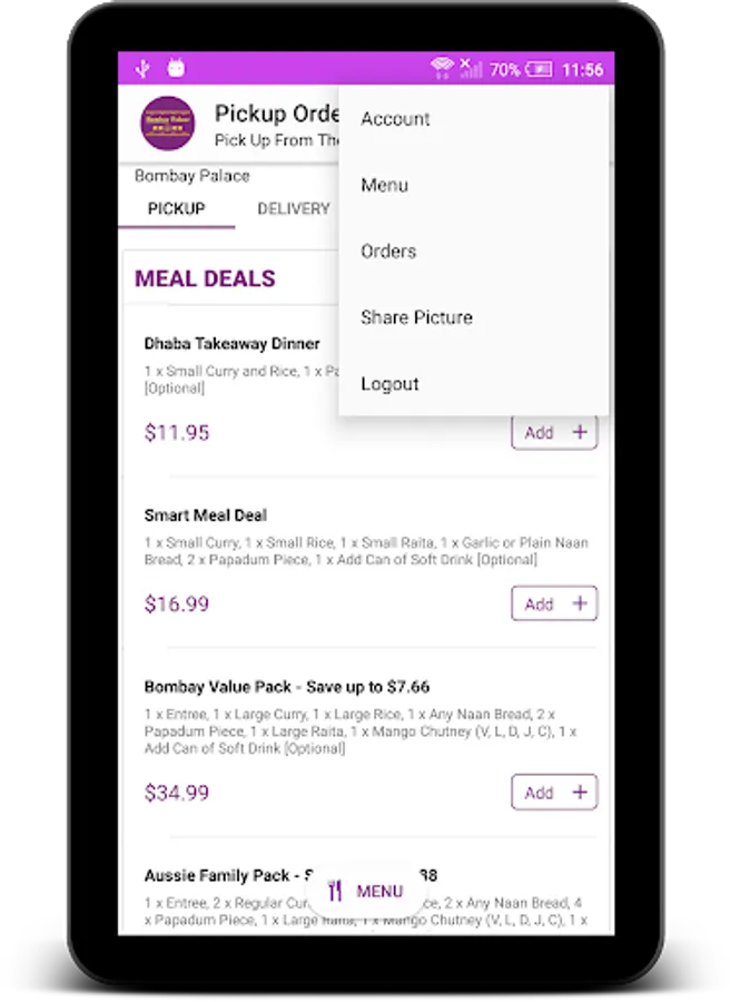Bombay Palace published an easy ordering APP. The Secure online payment gateway will accept Visa, Master, AMX and PayPal payment.