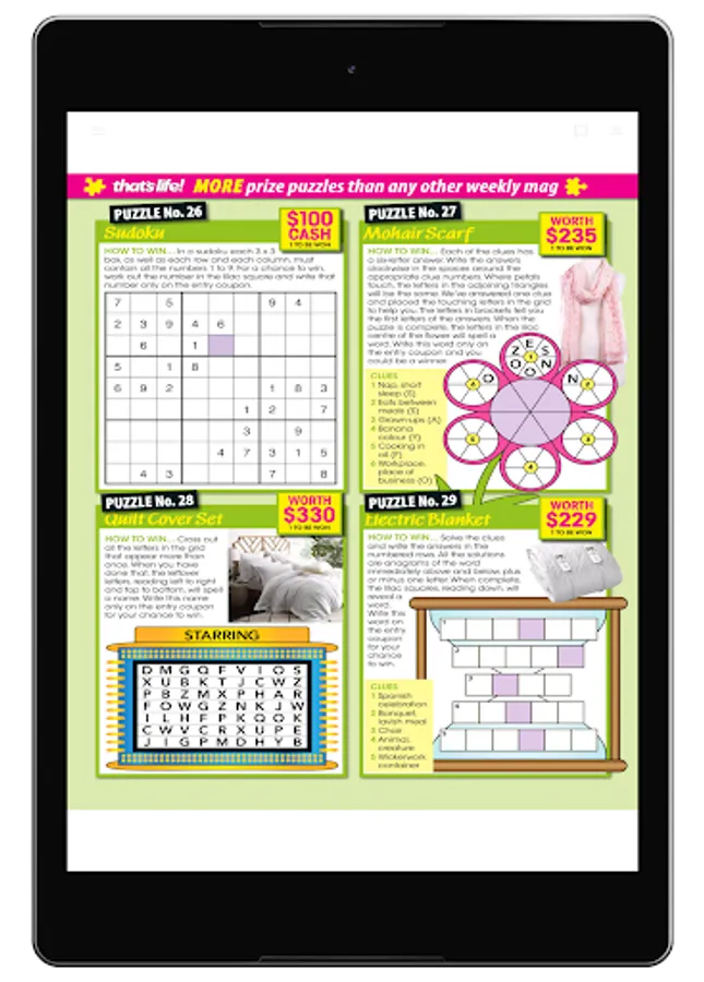 that’s life! is Australia’s No. 1 real-life magazine and the third most read magazine in the country. With the best real-life stories every week, readers enjoy a mix of budget-friendly recipes, handy tips, stars, fashion, beauty and fiction, as well as the incredible 20-page puzzle section – with each puzzle giving readers a chance to win amazing prizes and cash on offer!