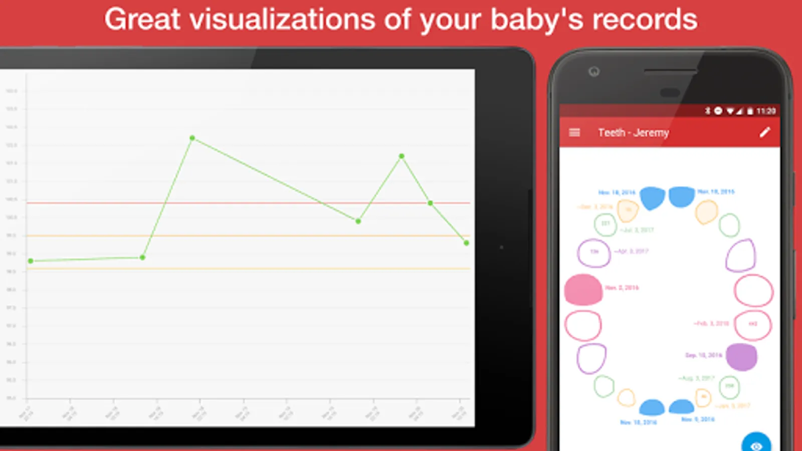 - Easily record and chart your babys Growths (weight, height and head circumference)