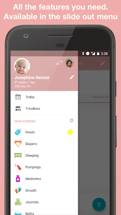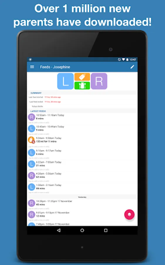 - Easily record breast/bottle/SOLID feeds with a single touch.
