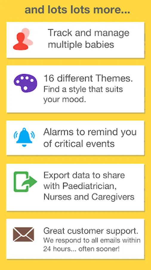 - Fully customizable notifications means that you never miss a feed or have a feed go for too long (not available in "Lite")
