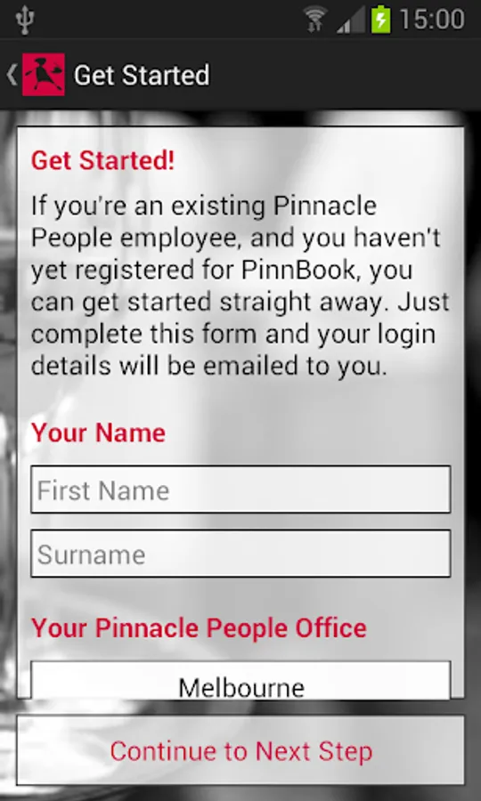 The application requires users to be registered with Pinnacle People. You can register within the application to join the Pinnacle Team.