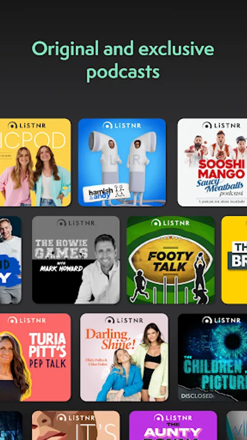 Listen to hundreds of exclusive and original podcasts, hosted by a diverse range of trusted and well-known personalities including Hamish and Andy, Abbie Chatfield, Mark ‘Howie’ Howard, Rosie Waterland, Zara & Michelle from Shameless, Matt Okine, Alex Dyson, Linda Marigliano, Brooke Boney, Adam Shand, and many more.