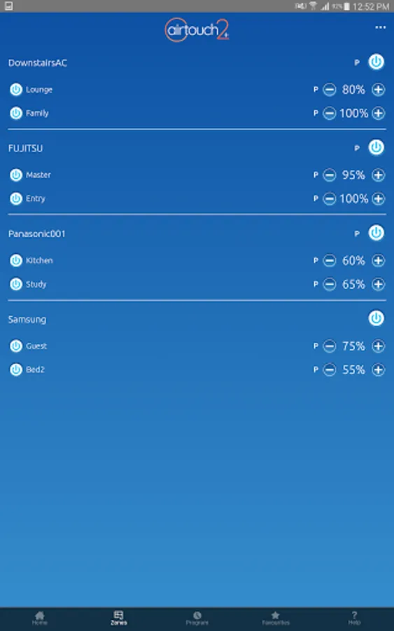 Featuring a new smart and easy to use interface design, you can now use your smart device to control AC mode, temperature and fan speed of reverse cycle ducted air conditioning units connected to your AirTouch system at home, as well as the air volume for individual rooms.
