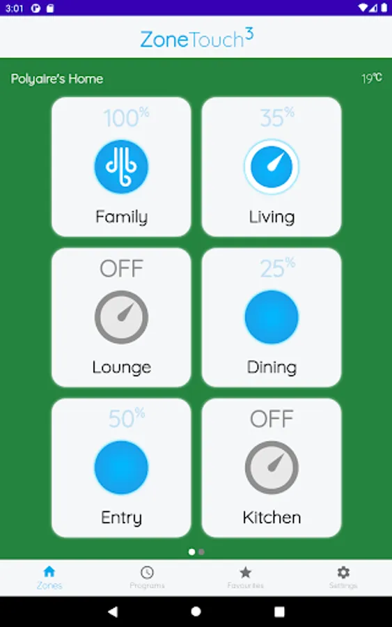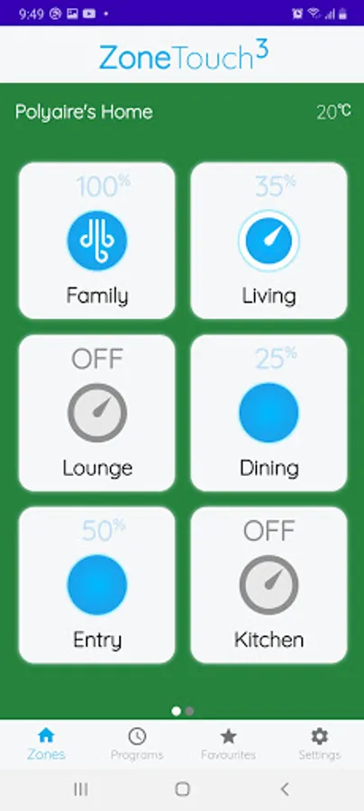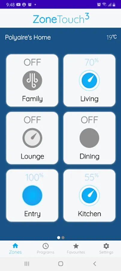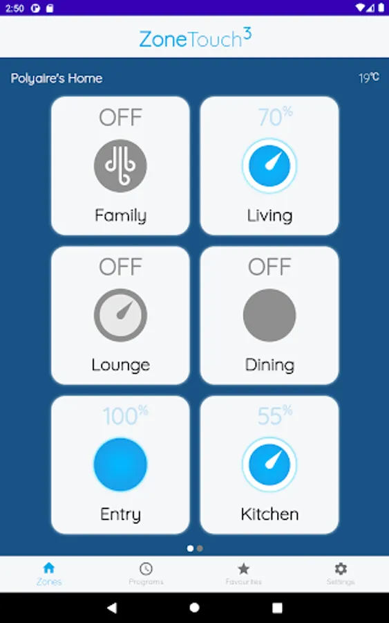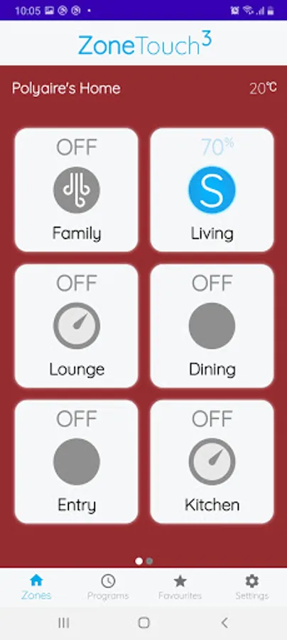 The ZoneTouch 3 app is the remote control of your ZoneTouch 3. Turn the airflow on and off, or adjust the volume of conditioned air in each zone of your home from your smart device.