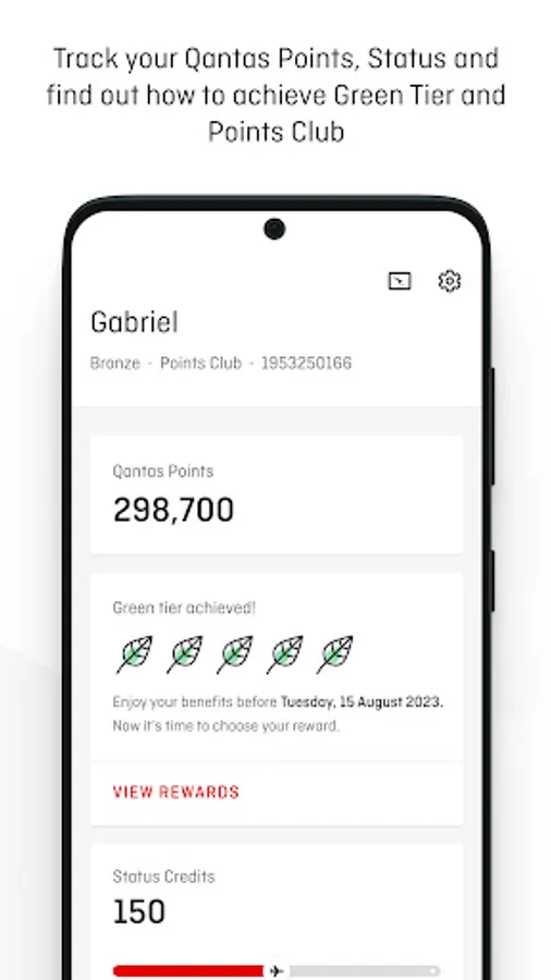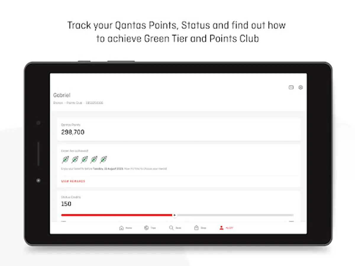 • See your Qantas Points activity and keep track of your Status Credits and tier progress