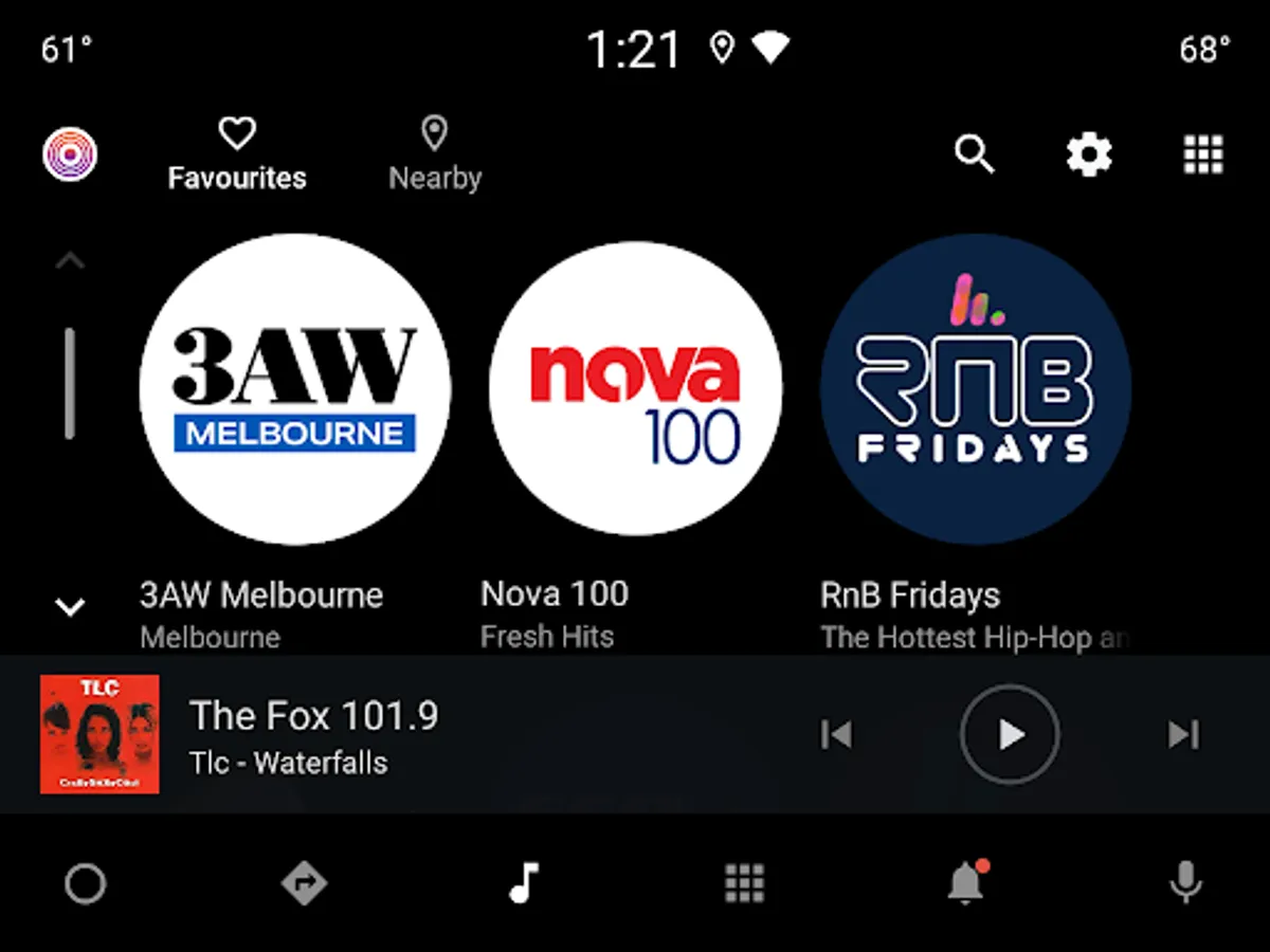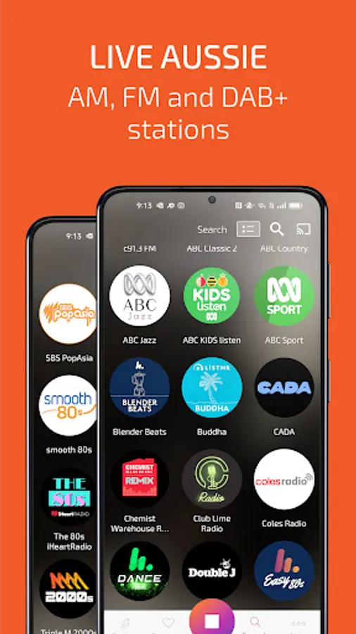 You can listen to stations such as: Nova, Triple M, KIIS, 2GB, Triple J, SBS Radio, Smooth FM, Fox FM, Power FM, ABC Local Radio, Hit FM, 3AW, SEN 1116, WSFM, ABC News Radio, Mix, SBS PopAsia, 2Day FM, The 80s iHeartRadio, Sky Sports Radio, Gold 104.3, 4BC, 2UE, Double J, Sea FM, Magic 1278, Edge 96.1, Mixx FM, Kix Country, Oldskool Hits, Star FM, 97.3fm, RSN Racing & Sport, ABC RN, 3MP, Hot Tomato, 96fm, i98fm, SEN Track, 4BH and many more.