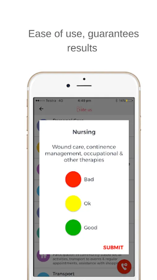 With its easy to use interface, 10 question survey, quick answer buttons, and emergency calls, it provides a much needed solution to the issues surrounding support services, and lack of care.