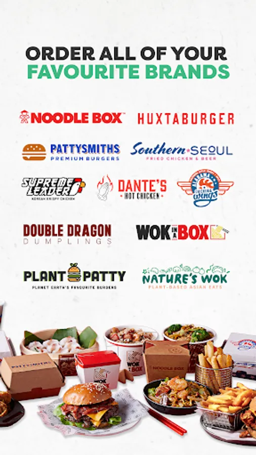 "Download our Online Ordering + Rewards app today for a tasty meal with a side of rewards. All your favourite brands such as Noodle Box, Pattysmiths Burgers, Huxtaburger, Wokinabox, Supreme Leader, Double Dragon Dumplings, Alabama Wings, Dante’s hot chicken, Plant Patty Burgers, Natures Wok and more!