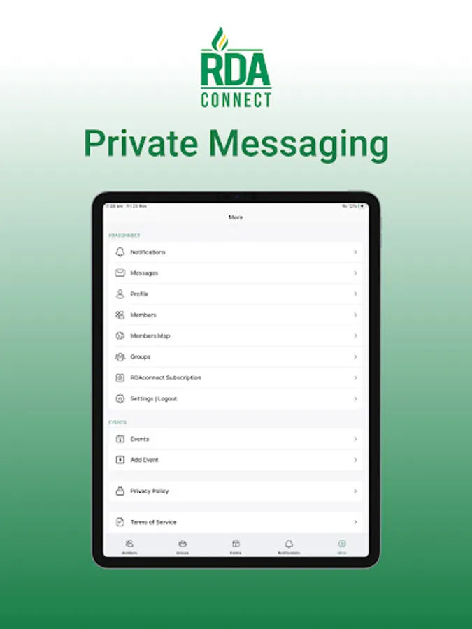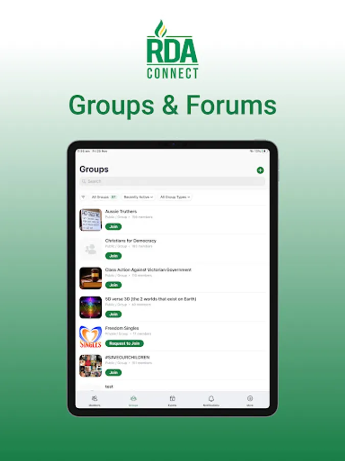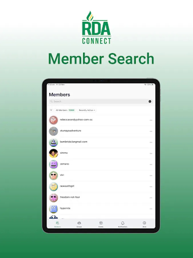 RDAconnect is the first website and app that connects people directly to each other based on location, hobbies, relationship status, family status, and profession. Members can private message, join discussion forums, and groups, and see upcoming events. Members can also create groups, and publish their own events.