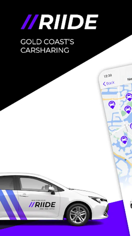 Download, register, and upload your license & bank card. Locate, book, and drive! Pay only for your usage, then park at the nearest RIIDE destination.