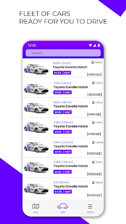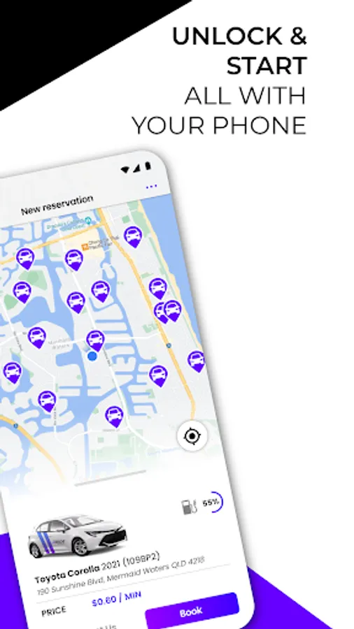 The app provides a map with locations of all available cars as well as time to walk to it.